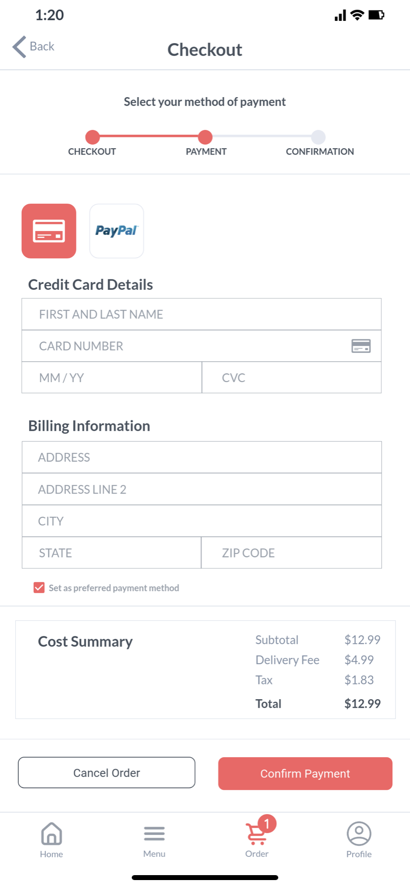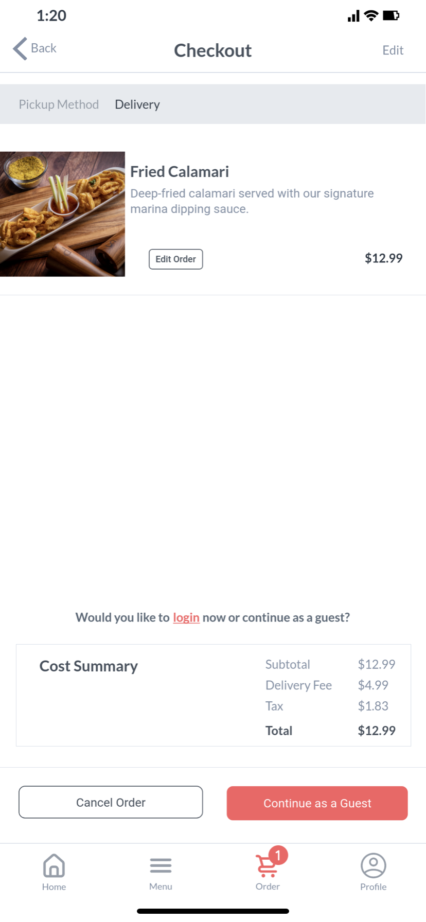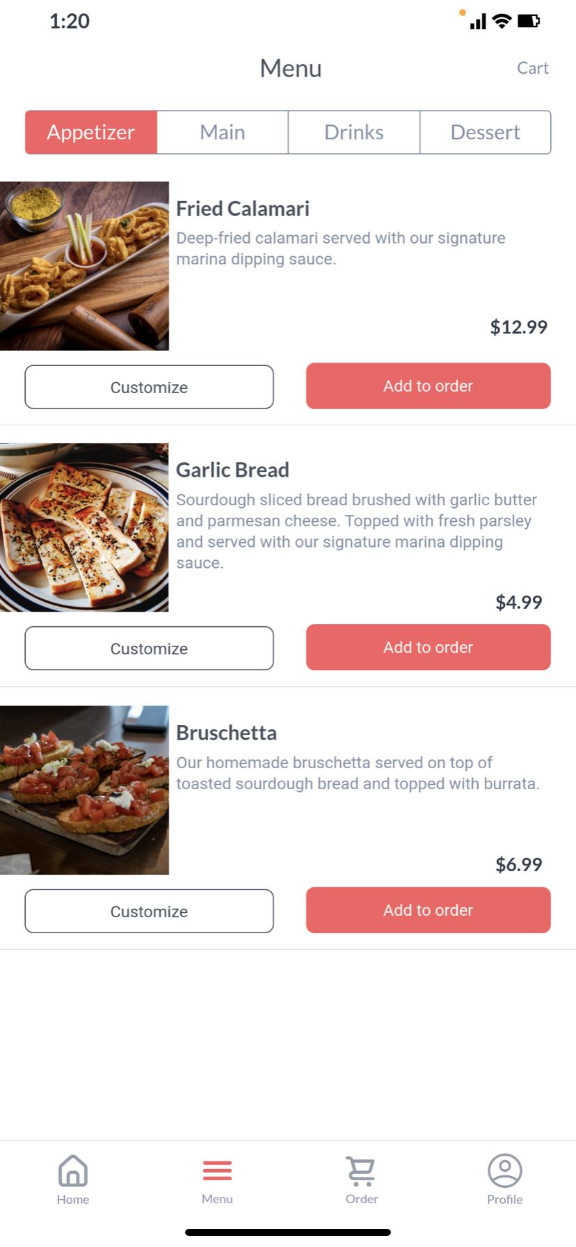 Restaurant Mobile Ordering App